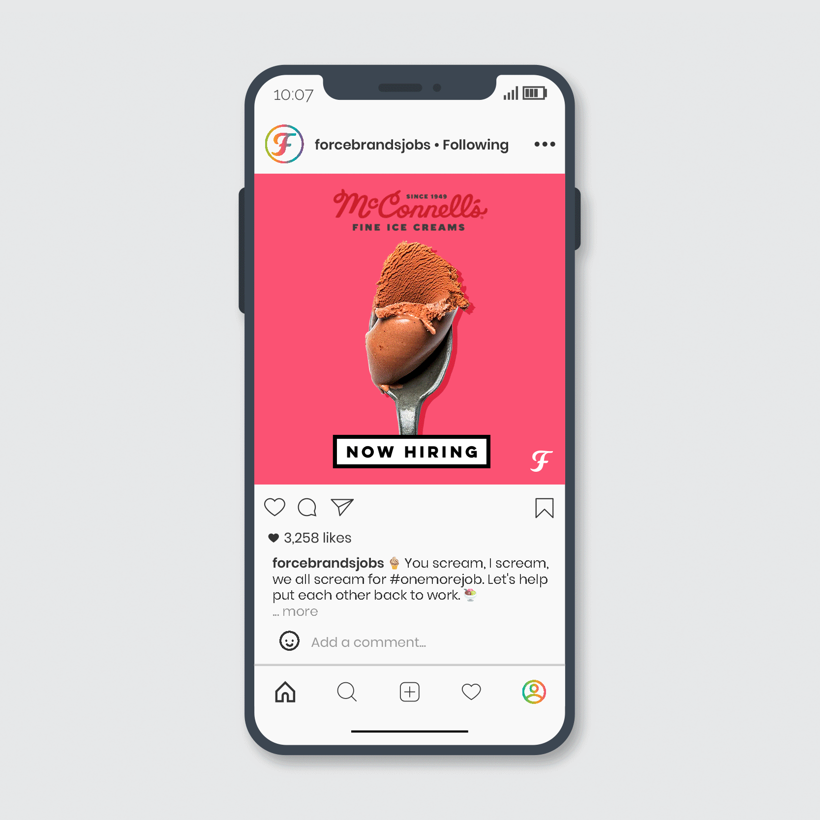 I took the reins on the visual identity for @forcebrandsjobs, designing the posts to be immediately scannable, modern, and compelling - tailored for early-career job seekers. Because the job board targets entry to junior-level roles, I crafted a youthful visual language (color, type, layout) that would cut through feed noise and resonate with that demographic.